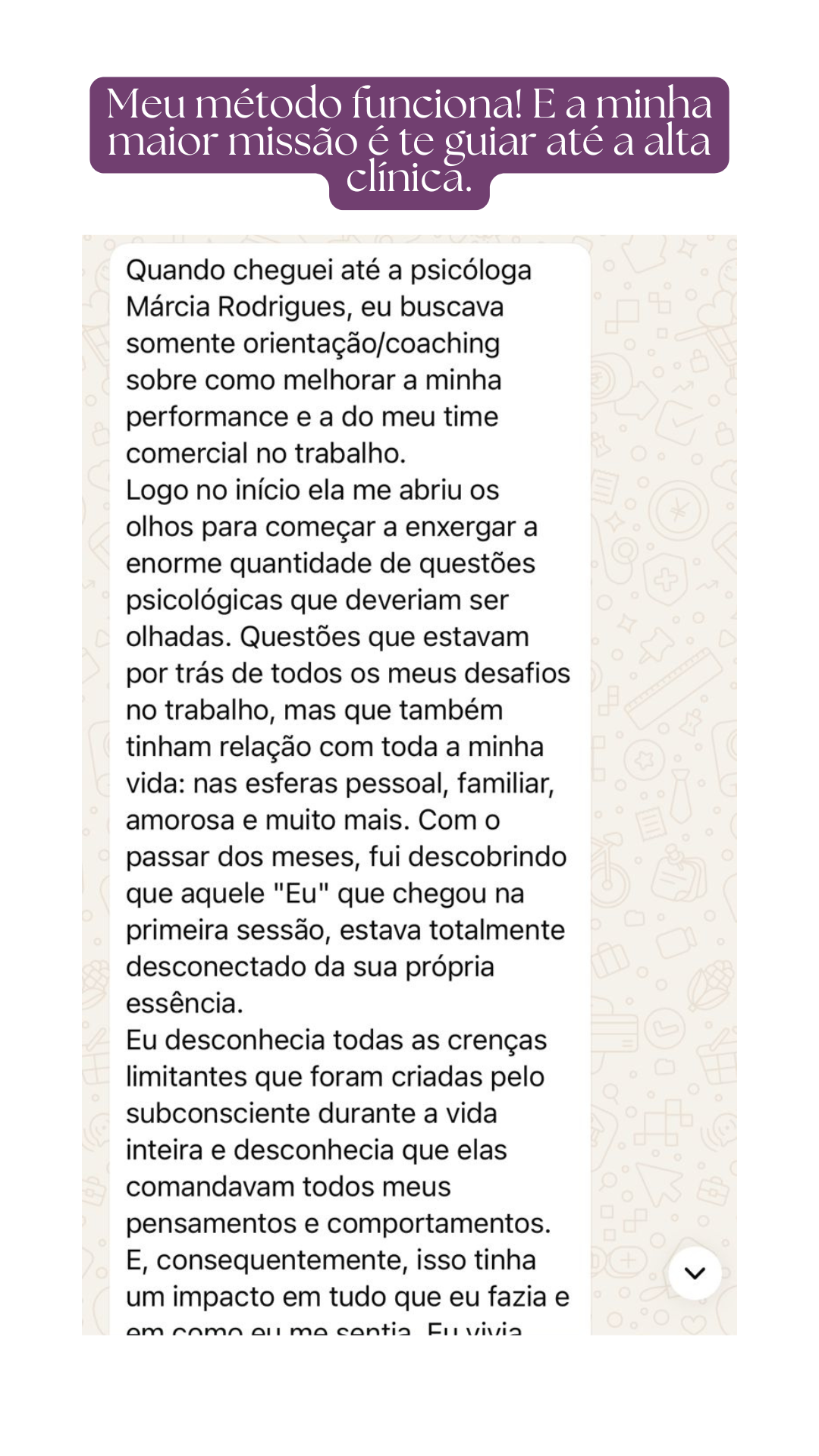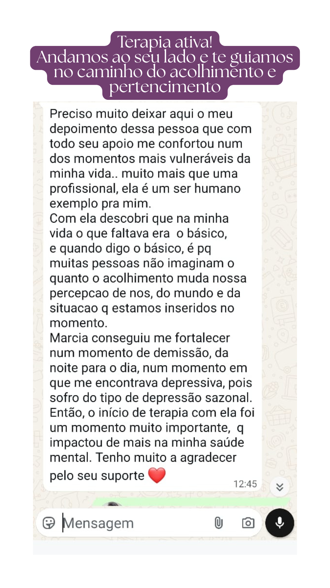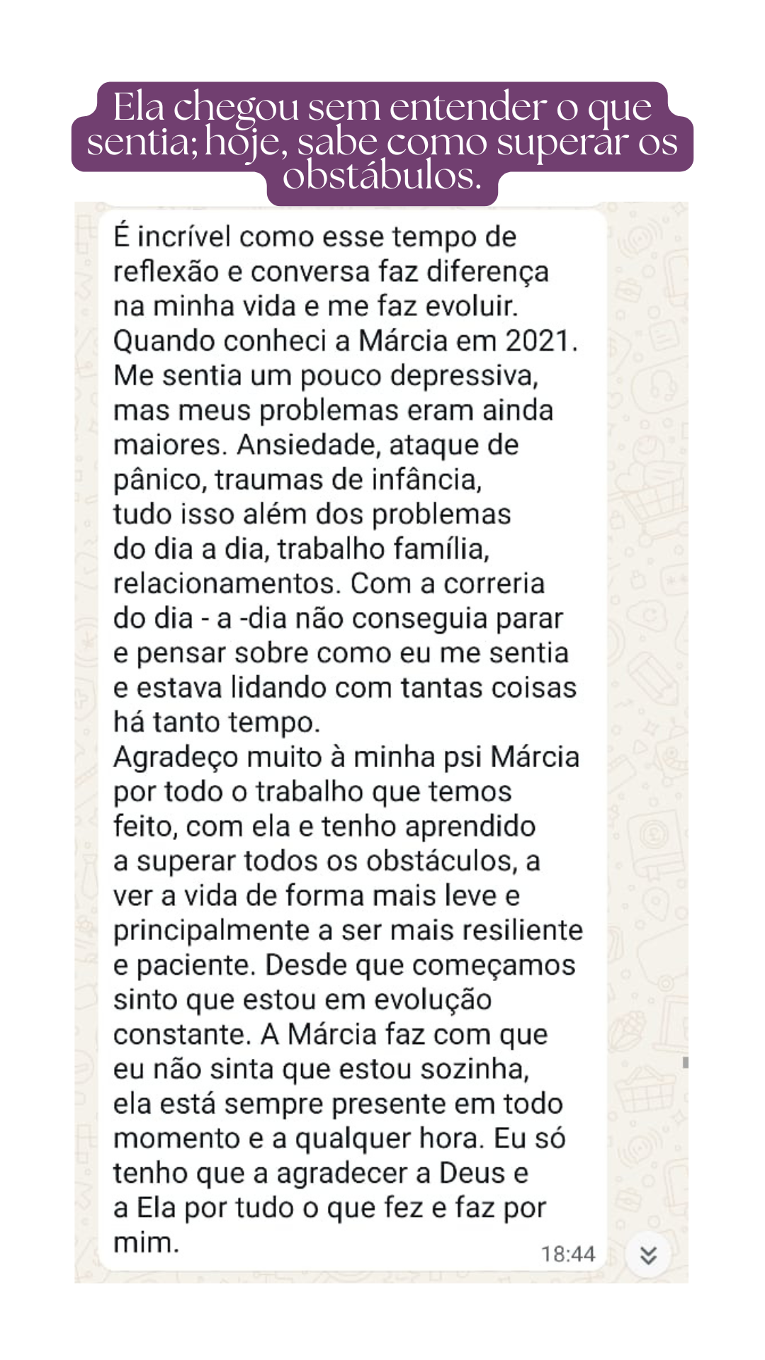 Sou Márcia Rodrigues, psicóloga, com mais de 15 anos de experiência clínica.